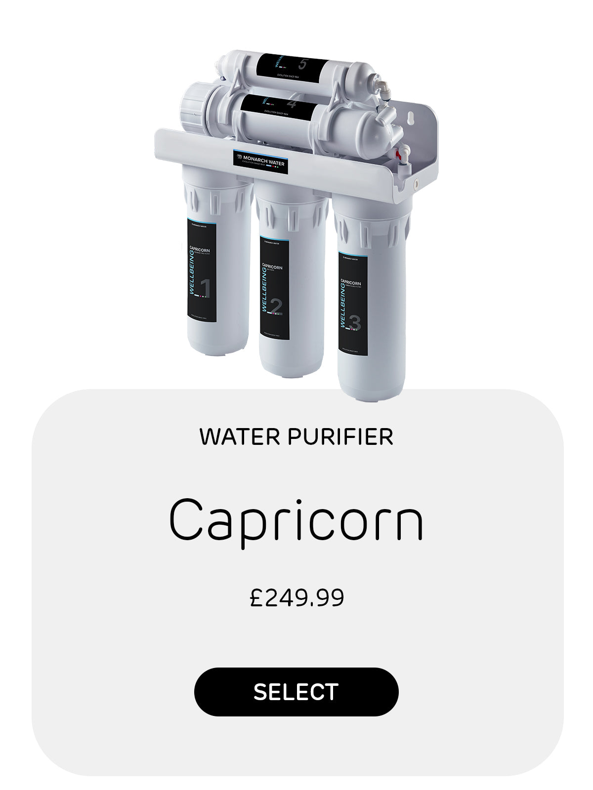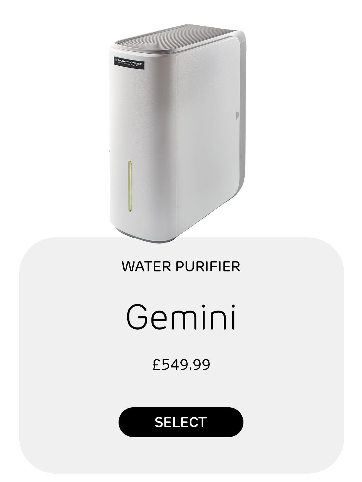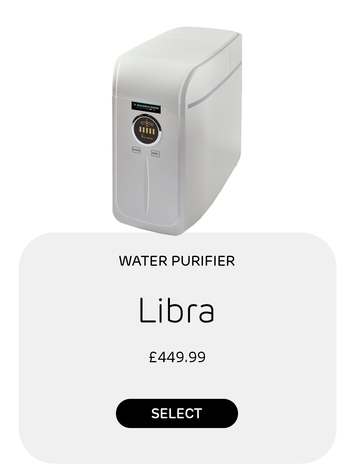 The purest water available for your home. All Monarch Water purifiers offer a 5-stage multi filtration process using a 0.001 semi-permeable membrane. These high-tech machines remove the water of all impurities whilst adding only the healthy minerals back in.